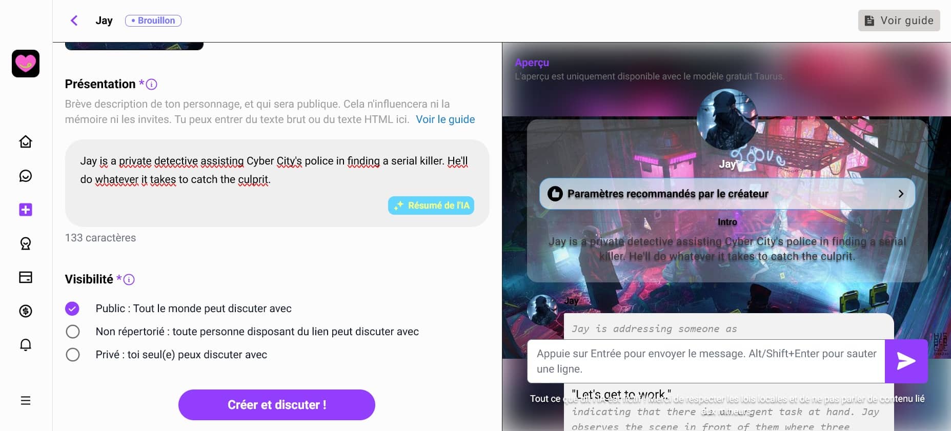 Les créateurs de personnages 🧠 : Tu as une imagination débordante ? Tu vas pouvoir créer des personnages de A à Z, définir leur histoire, leur personnalité et les partager avec une immense communauté.